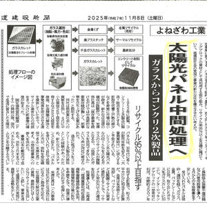 当社の太陽光パネル中間処理事業参入への取り組みが、北海道建設新聞で紹介されました。